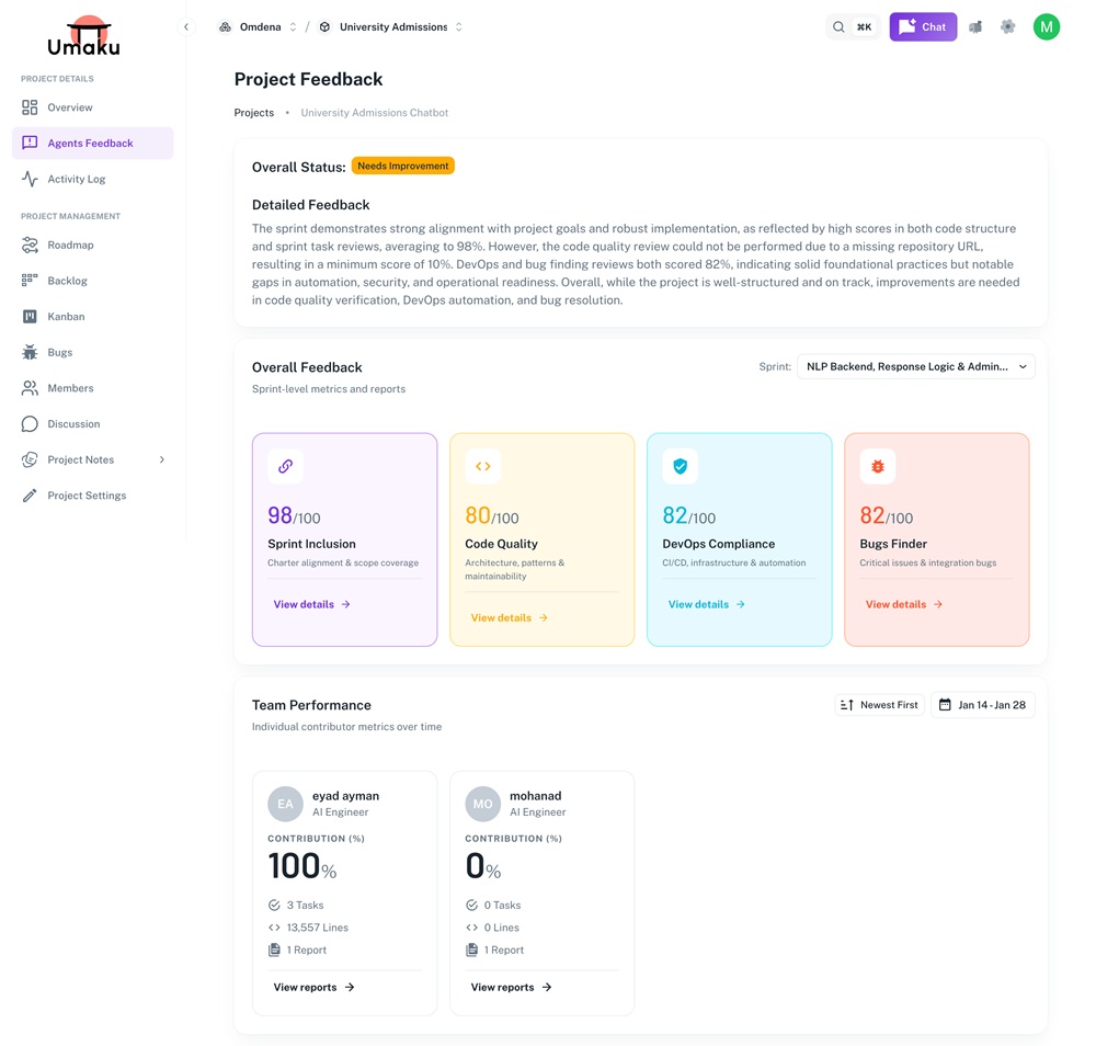 Figure 2. Project Feedback Dashboard – Sprint Evaluation Summary/Team Performance